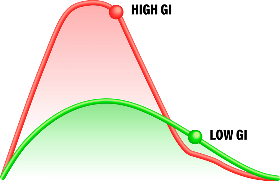 The glycemic index (GI) is a physiologically based measure of the effect of carbohydrates on our blood glucose levels (BGL). When carbohydrates are digested, absorbed and metabolised slowly it gives us sustained energy and helps us maintain a healthy weight. Tested carbohydrate foods are given a score on a scale of 1-100. Foods with a score of 55 and under are low GI.